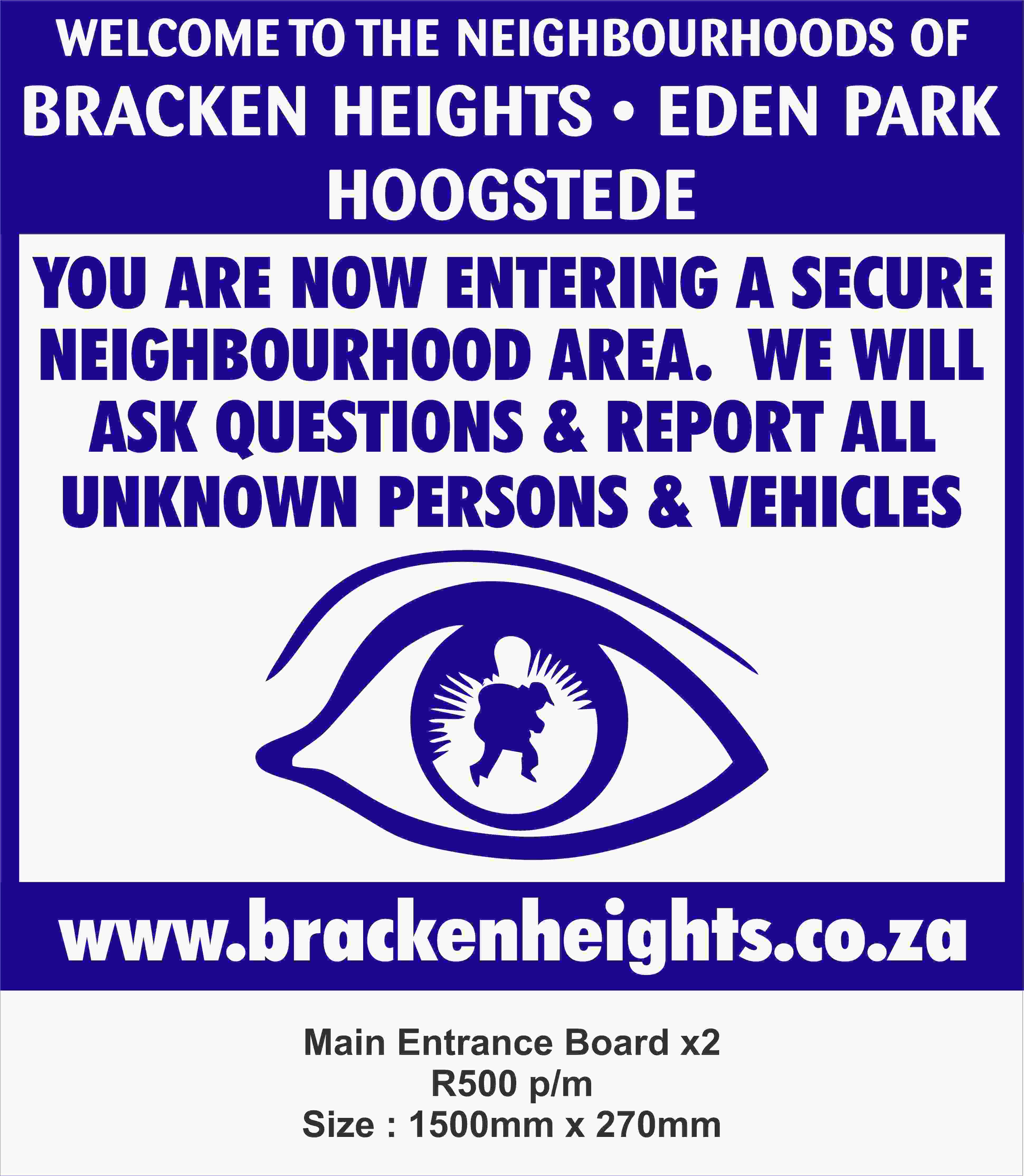Excellent assistance from Security Companies who are part of the Bracken Heights Neighbourhood Watch initiative.